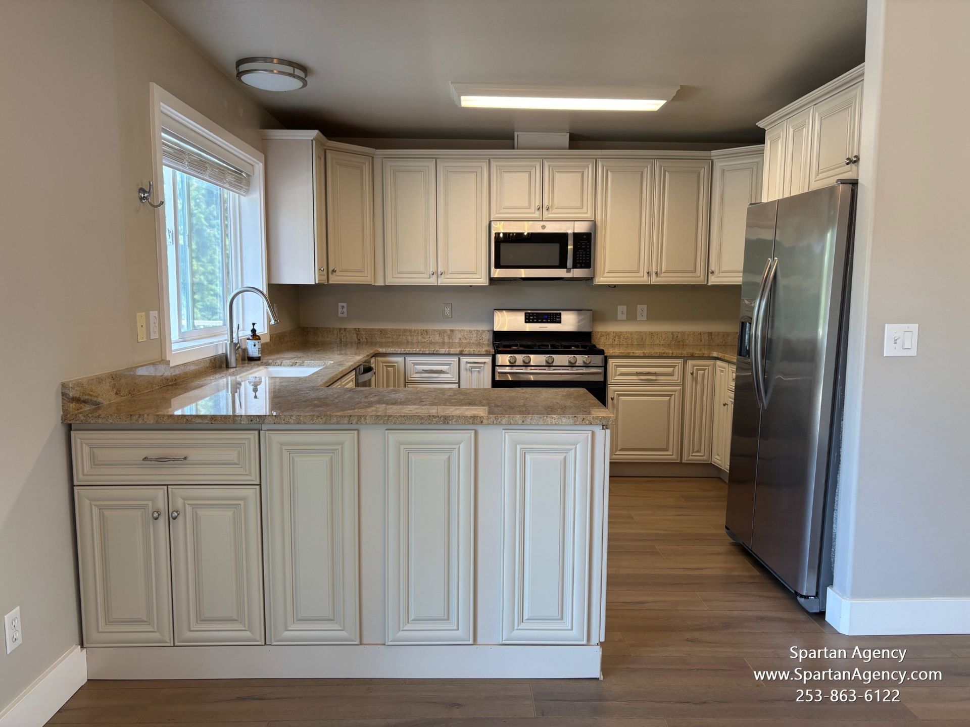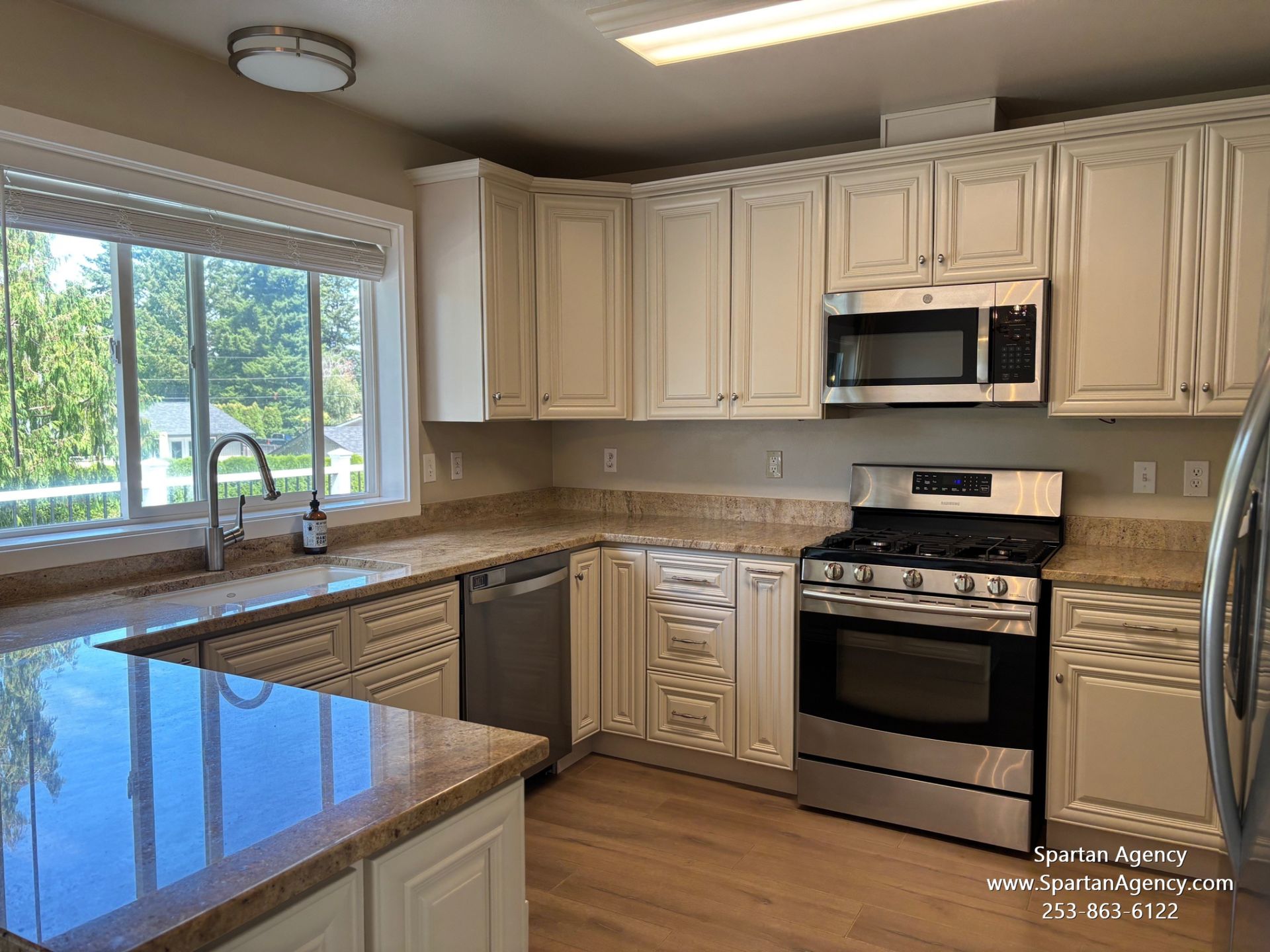 Appliances: Gas range, refrigerator, dishwasher, microwave, washer and dryer